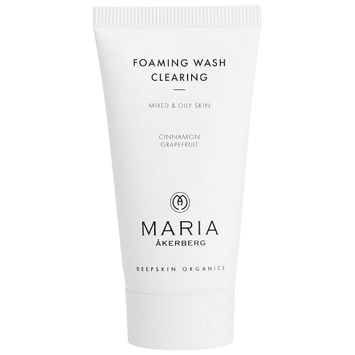 Foaming Face Washing Clearing er en skummende rensegele for en normal til kombinert/fet hud som ikke er sensitiv. Basert på rengjørende ingredienser fra mais og kokos som ikke tørker ut og som beskytter hudens egen beskyttende barriere. Eteriske oljer fra grapefrukt, oregano, timian, kanel og lavendel har rengjørende og desinfiserende effekt.