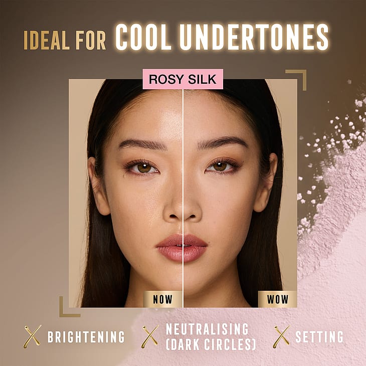 For å lysne: trykk forsiktig Rosy Silk eller Honey Hue under øynene for å lysne og nøytralisere mørke ringer.