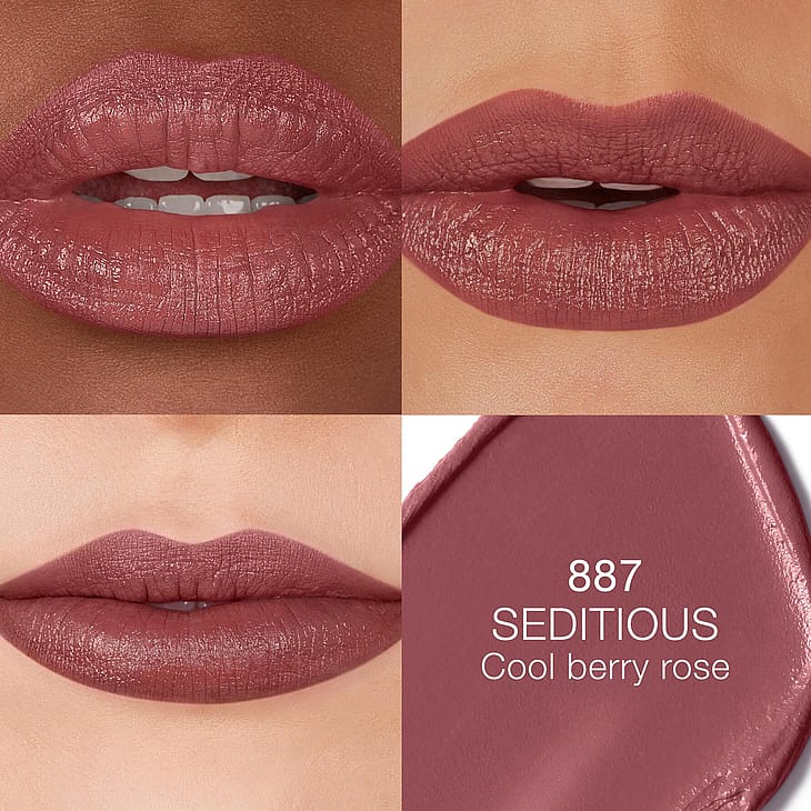 LUXE COMFORT COMPLEX Denne leppestiften er beriket med glattende Rosehip Seed Oil som låser inn fuktighet, samtidig som den gir lett, medium-til-full dekning.