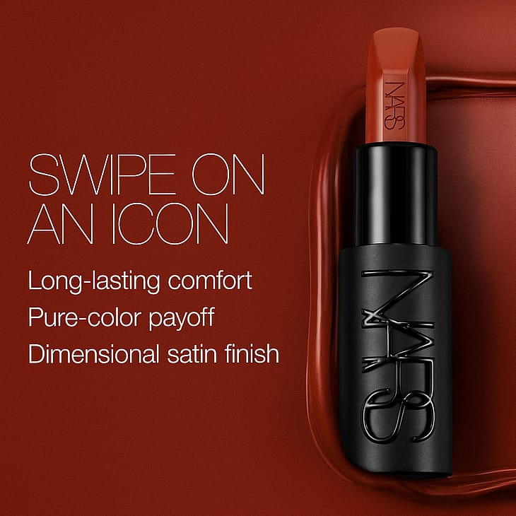 Denne langvarige leppestiften fra NARS gir fukt til leppene og får dem til å skinne med bare ett blikk, én bevegelse og ett strøk. Explicit Lipstick gir optimal komfort med en høykvalitets satengfinish leppestift som leverer levende, ren farge, og kremet, smittefri påføring. En ny presisjonstupp definerer og konturerer for å skape en sofistikert skulptur i fryktløse nyanser. Luxe Comfort Complex sørger for en lett følelse og tilfører fuktighet med en kraftfull kombinasjon av Rosehip Seed Oil og Hyaluronsyre. Møt det nye ikonet innen luksus.