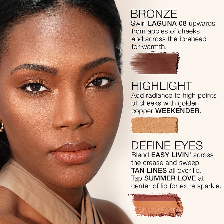 3. Bland den matte nyansen EASY LIVIN’ eller en nyanse av Laguna Bronzing Powder gjennom øyets globallinje for å oppnå mer dybde.