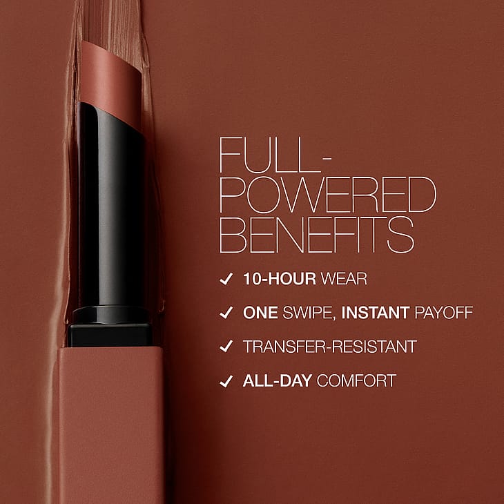 Play with a high-intensity matte sensation. NARS Powermatte Lipstick er en leppestift som med bare en påføring gir en jevn og matt finish som varer i 10 timer. Leppestiften inneholder Power Pigment Complex som er en dynamisk blanding av rene pigmenter og color-locking ingredienser som metter leppene med en tett farge som føles komfortabel igjennom hele dagen.
