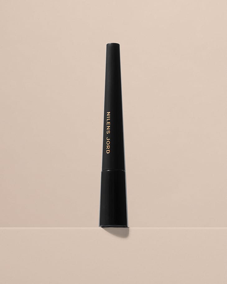 Rist Liquid Eyeliner Black godt før bruk, og legg den tynne kosten helt inntil vippekanten. Påfør som ønsket. For best mulig holdbarhet, bruk gjerne Nilens Jord Eye Primer før påføring.
