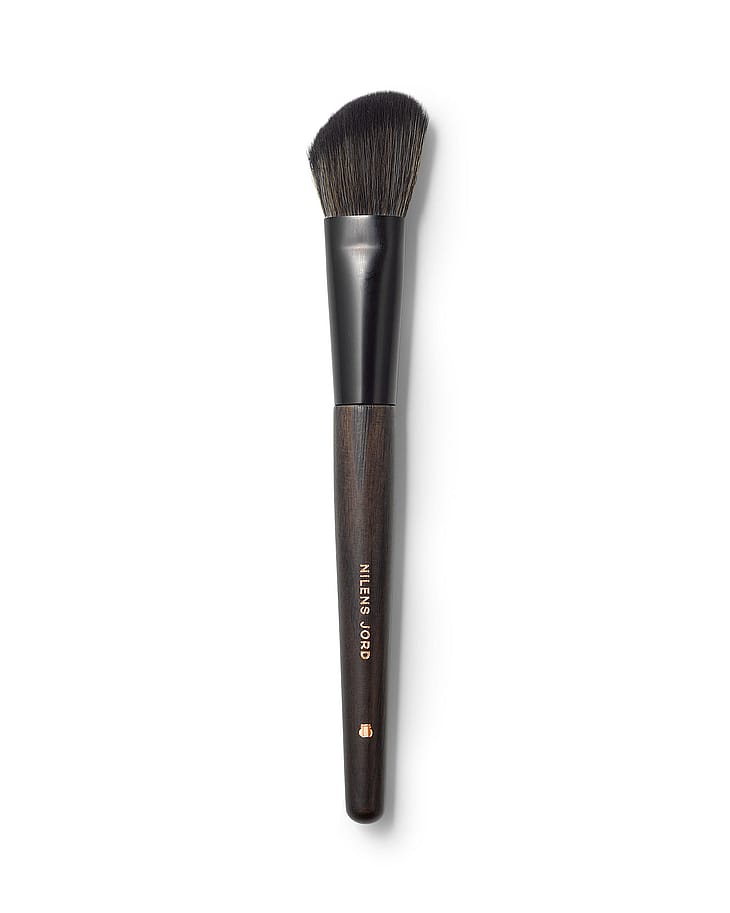 Blush Brush er en myk og kompakt børste med et smalt, avrundet børstehode som gjør det enkelt å jobbe med pigmenterte blushprodukter, både i pudder- og kremform. Børsten følger konturen av kinnbeina og hulrommene i kinnene, noe som gir en presis og kontrollert påføring og en flott definisjon av ansiktet. Blush Brush er håndlaget med skaft av ask, resirkulert aluminium og veganske hår som både er slitesterke og hygieniske.