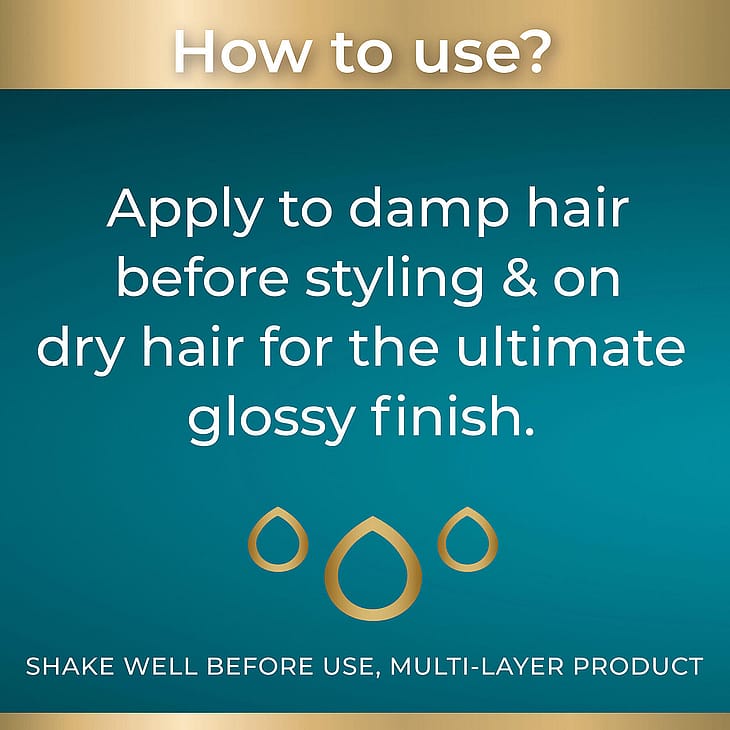 For best resultat: Rist godt før bruk og spray en liten mengde i fuktig eller tørt hår.