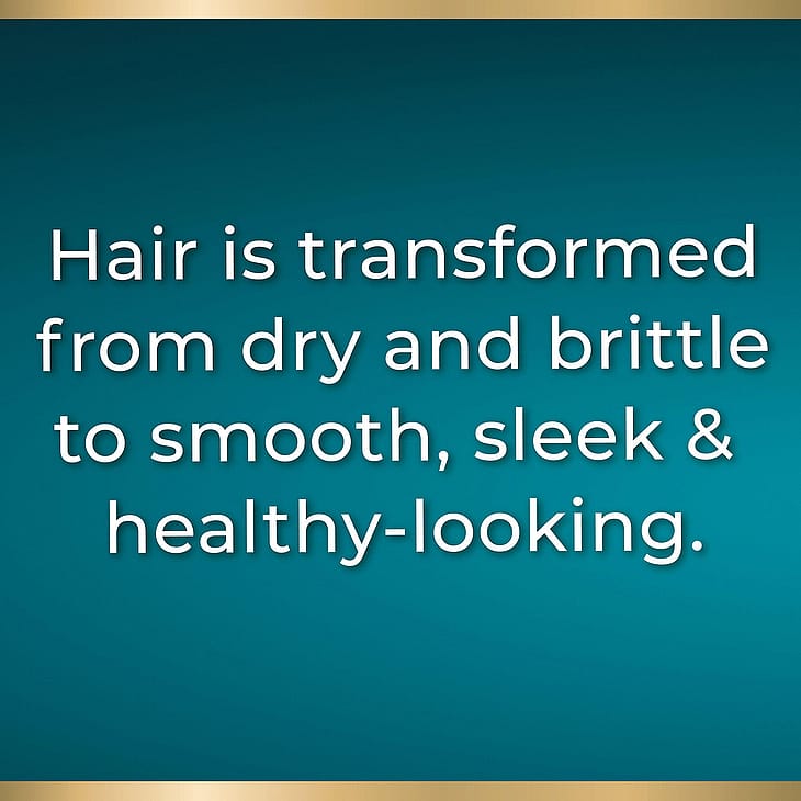 Den næringsrike formelen kombinerer fuktighetsgivende ingredienser som kokos- og jojobaolje, sheasmør, kaldpresset arganolje fra Marokko og kameliaolje. Resultatet? Fem ganger sterkere hår med strålende glans og opptil 80 % mindre frizz.