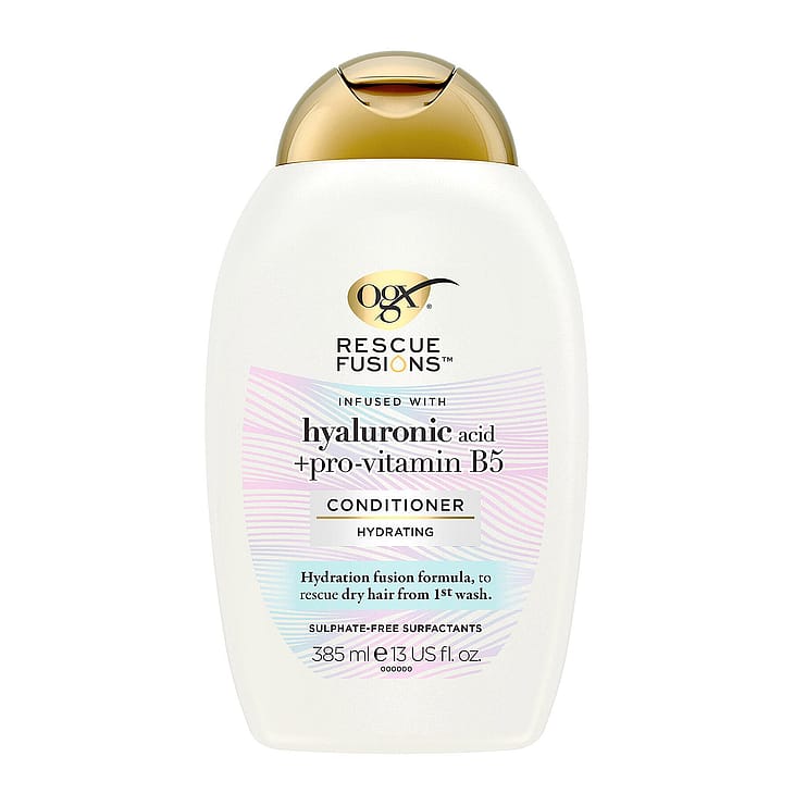 Gi håret den pleien det fortjener med OGX Rescue Fusions Hyaluronic Acid Hydrating Hair Conditioner – en kraftig fuktighetsgivende formel som gir nytt liv til tørt og skadet hår. Beriket med hyaluronsyre og pro-vitamin B5 tilfører balsamen en umiddelbar fuktboost som styrker og mykgjør håret, samtidig som det gjenvinner sin naturlige glans og spenst.