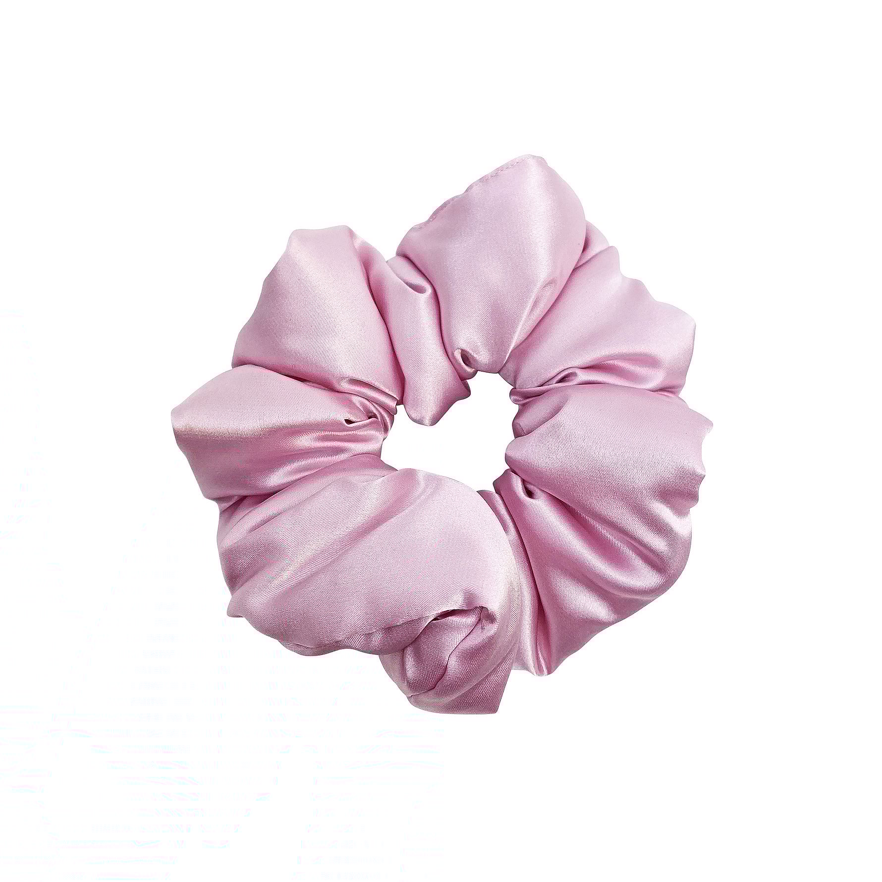 Nydelig myk og behagelig scrunchie i rosa sateng. Mål: 15 cm.