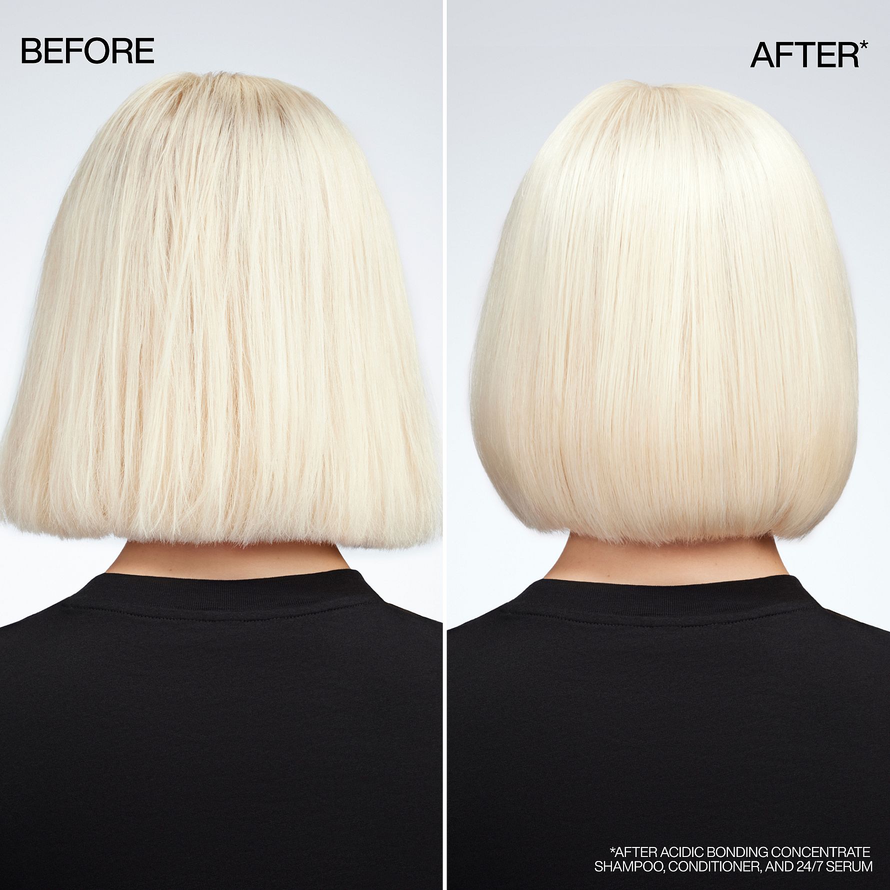 Motvirk daglig slitasje over natten med det første bonding serumet som reparerer håret døgnet rundt. Formulert med sitronsyre som trenger 7 lag dypt* og styrker håret, kombinert med polyglutaminsyre og squalane for en høy leave-in-konsentrasjon som skaper langvarig beskyttelse og reparasjon. Dette 24/7 bonding serumet: