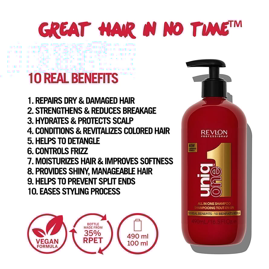 10 fordeler i én enkelt sjampo med en ny og forbedret formel. Utviklet for å gi et imponerende glatt hår med mindre krus og silkemykt, skinnende hår som er lett å jobbe med. Reparerer tørt og skadet hår. Styrker og reduserer brudd. Fukter og beskytter hodebunnen. Pleier og revitaliserer farget hår. Gjør håret lettere å gre ut. Reduserer krusing. Fukter håret og gjør det mykere. Forebygger spaltede tupper. Gjør det enklere å style håret.