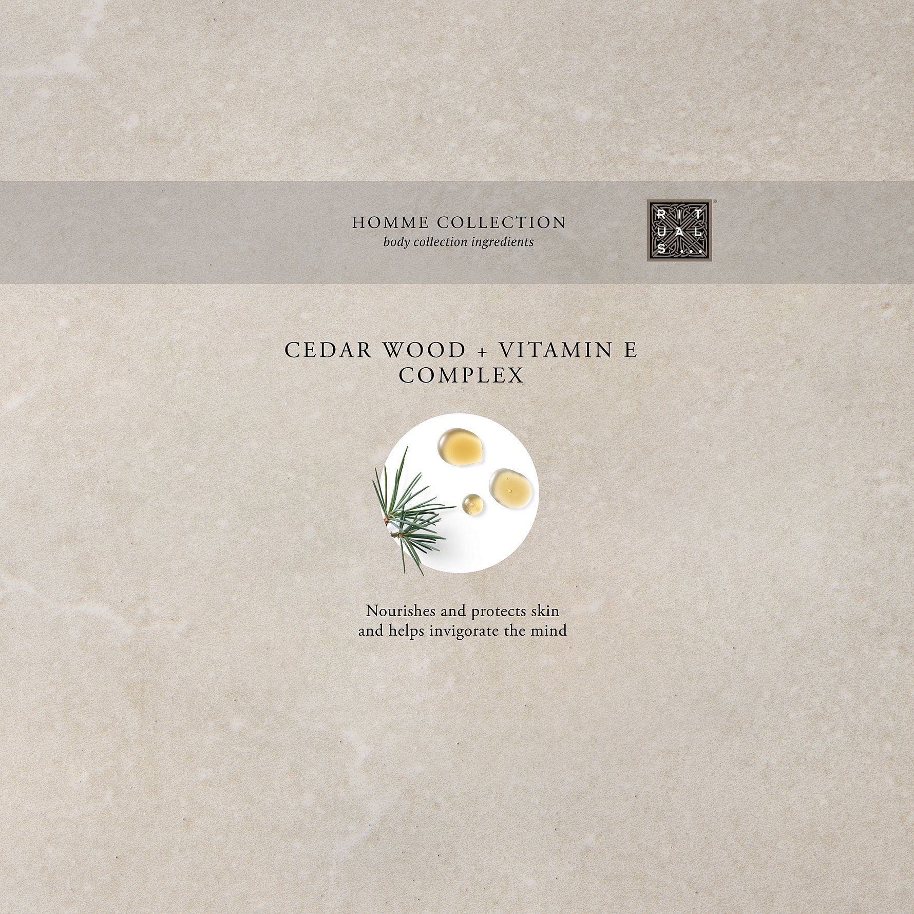 Homme dusjgelé er en effektiv, rensende gelé som forvandles til et rikt renseskum for kroppen. Formelen inneholder et forfriskende kompleks av sedertre og E-vitamin.