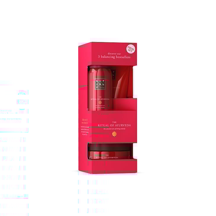 Settet fra The Ritual of Ayurveda er den perfekte introduksjonen til Rituals og er en ideell gave til noen du er glad i eller til deg selv. Det kombinerer tre av merkets bestselgere: Et dusjskum, samt kroppskrem og kroppsskrubb. Gjenopprett balansen mellom kropp og sinn med produkter basert på indisk rose og mandelolje.