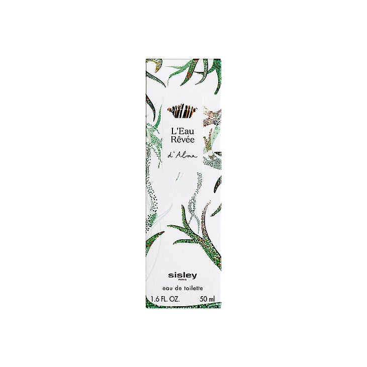 Eau Rêvée d'Alma er designet i samarbeid med to kunstnere, ELŻBIETA RADZIWIŁŁ og BRONISŁAW KRZYSZTOF, og fører oss inn i en verden av drømmer gjennomsyret av letthet. Canson papireske og glassflaske er laget i Frankrike. Esken og flasken kan resirkuleres.