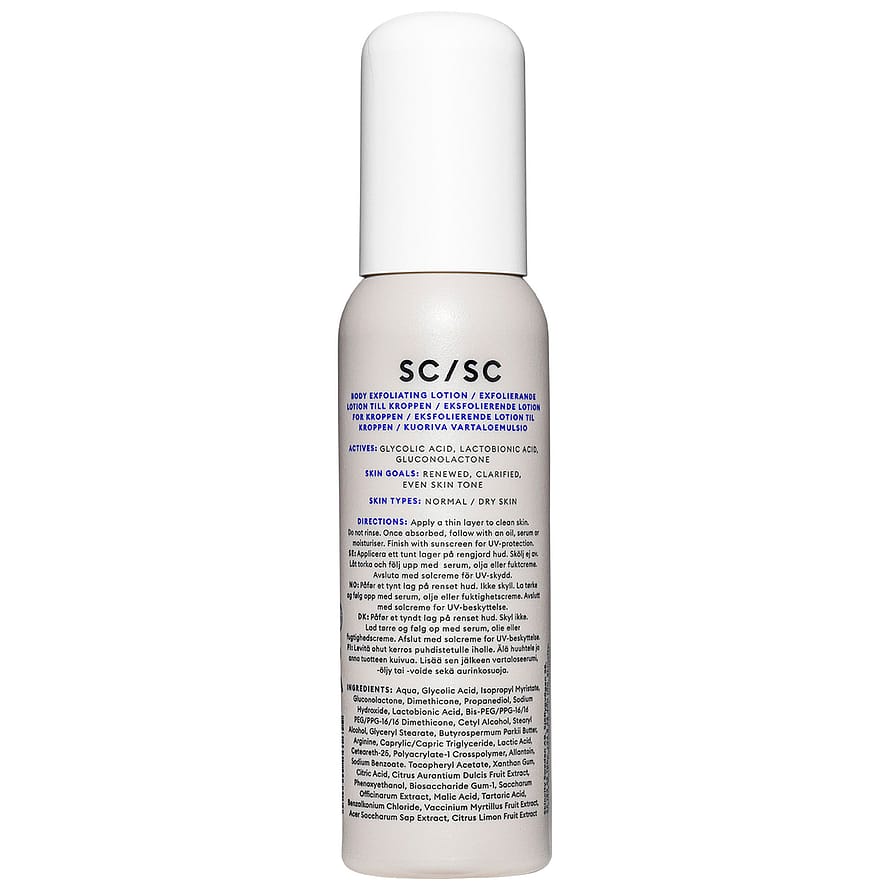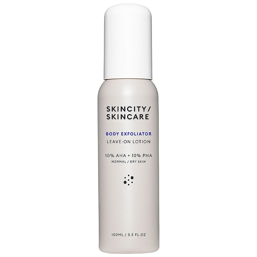 Produktet har fått nytt navn og utseende, men har det samme fine innholdet. Leave-On Lotion het tidligere AHA/PHA Body Resurfacer. Leave-On Lotion er en lett gele-emulsjon med 10% AHA- og 10% PHA-syrer som fornyer hudteksturen og virker utjevnende på hudtonen - perfekt ved hudtilstander på kroppen som keratosis pilaris, acne og tørr eller hud med ujevn pigmentering. AHA-syrer som glykolsyre, melkesyre og eplesyre eksfolierer hudens ytre slik at tørre og ga mle hudceller forsvinner, mens laktobinisk syre og glukonolakton (PHA) binder rikelig med fukt til huden. Ved regelmessig bruk blir huden både jevnere og klarere, og mer mottagelig for fuktgivende og næringsrike produkter som kommer etterpå. Uparfymert produkt. Unngå kontakt med øynene. pH-verdi ca 3,8. Uparfymert gele-emulsion med AHA- og PHA syrer. Eksfolierer og jevner ut hudtone og tekstur. Perfekt ved keratosis pilaris, akne og pigmenteringer.