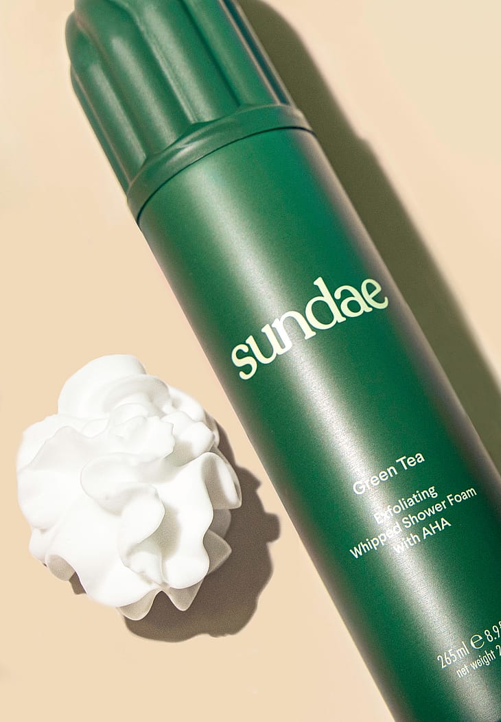 Water, Glycerin, Butane, Sodium Cocoyl Isethionate, Decyl Glucoside, Caprylyl/Capryl Glucoside, Stearic Acid, Propane, Fragrance, Glycolic Acid, Camellia Sinensis (Green Tea) Leaf Extract, Tocopherol, Phenoxyethanol, Caprylyl Glycol, Sodium Benzoate, Citric Acid, Limonene, Linalool, Citronellol.