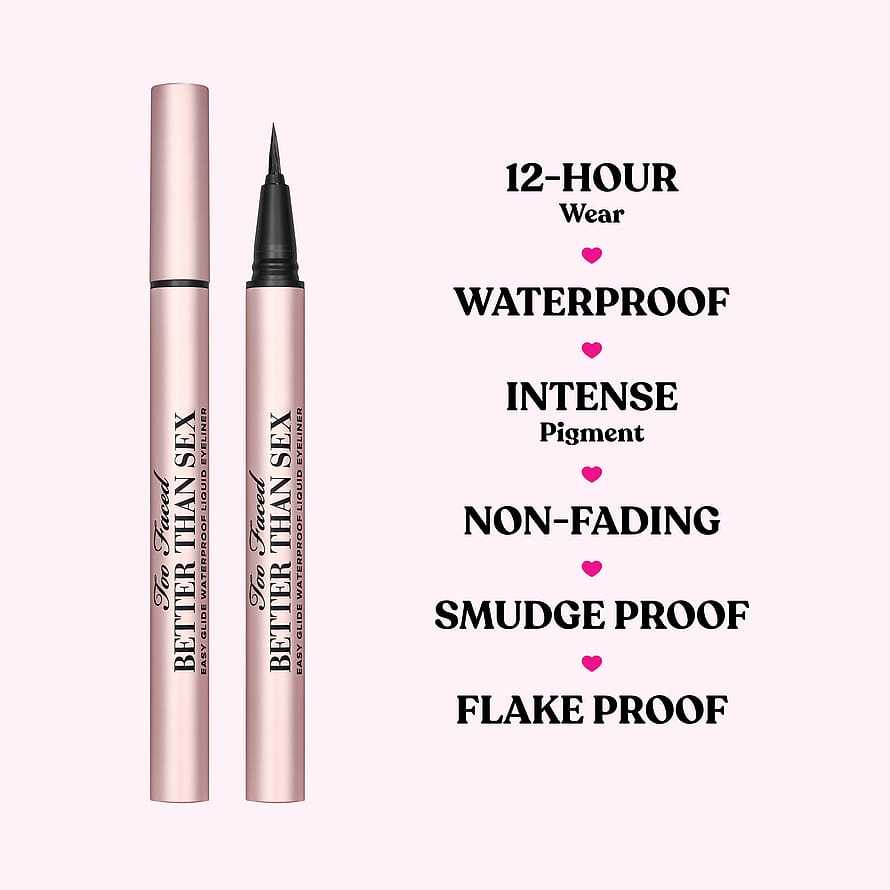 Kombinasjonen av vår vannfaste Easy Glide-formel og vår innovative dobbeltfiberkost skaper en eyeliner som er så fantastisk at den er... Bedre enn sex.
