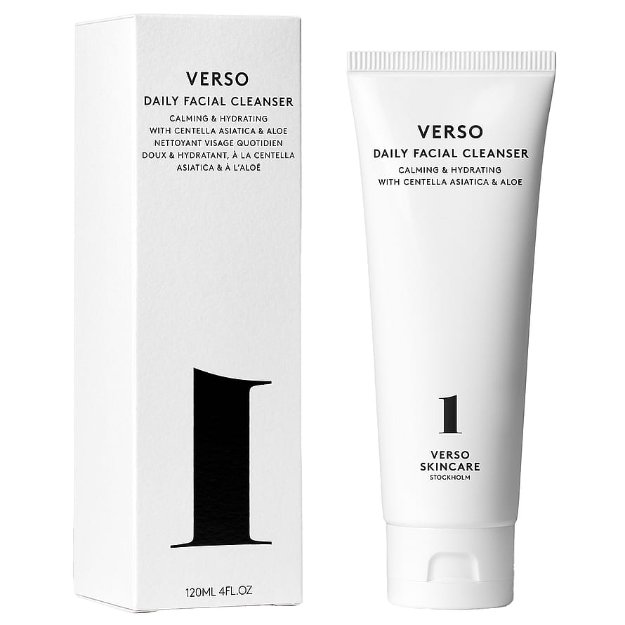Verso Daily Facial Cleanser er en skånsom, men effektiv ansiktsrens som fjerner urenheter og lett sminke uten å forstyrre hudens naturlige fuktbalanse. Den melkeaktige geléen forvandles til et mykt skum ved kontakt med vann, og etterlater huden ren, myk og forfrisket – klar for neste steg i hudpleierutinen. Formelen er beriket med antioksidanter og beroligende ingredienser som centella asiatica, aloe vera og astaxanthin. Disse bidrar til å redusere midlertidig rødhet, styrke hudbarrieren og beskytte mot ytre påkjenninger som forurensning og værforandringer. Passer alle hudtyper, inkludert sensitiv og akneutsatt hud. Perfekt som første steg i din morgen- eller kveldsrutine – for en beroliget, fuktet og balansert hud. Mildt parfymert formula.