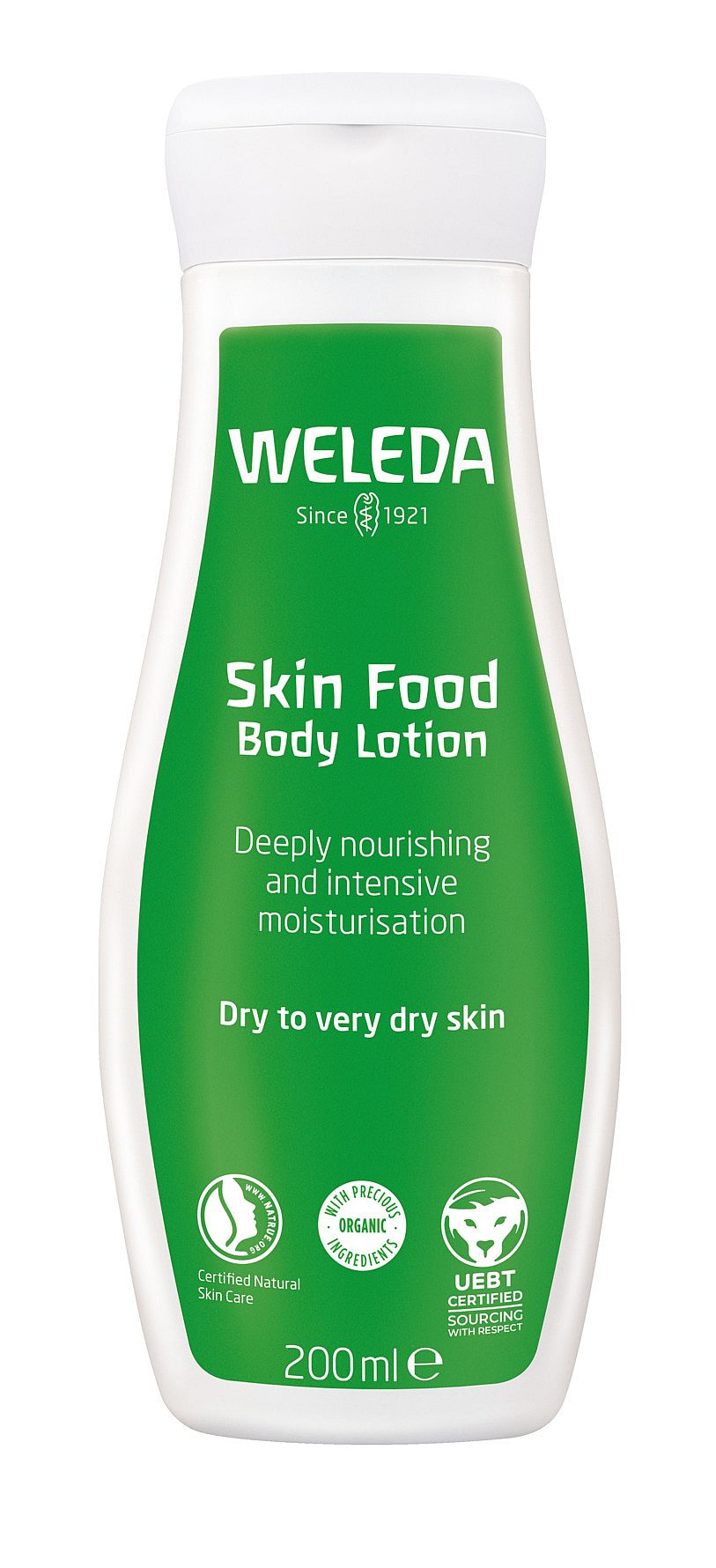 Økosertifisert med i snitt 80 % økologiske ingredienser. En rik kroppslotion som mykgjør og gir umiddelbar og langvarig fuktighetstilførsel med mild solsikkeolje, mykt og beskyttende sheasmør og Skin Foods’ signaturekstrakt med kamille, ringblomst og stemorsblomst. Myk, naturlig duft av appelsin, lavendel og benzo. Perfekt for tørr til svært tørr hud. Weledas hudpleieprodukter er 100 % naturlige, har 0 % syntetisk innhold og er økologisk sertifiserte av NATRUE. Weledas produkter inneholder råvarer som er tilvirket av produsenter med rettferdige leve- og arbeidsvilkår. Alle Weledas produkter har merkingen UEBT «SOURCING WITH RESPECT». Produktet er 100 % vegansk.