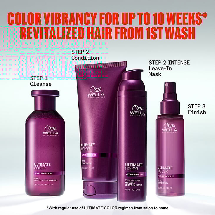 Wella Professionals Ultimate Color Shampoo er en skånsom shampoo som beroliger hodebunnen og hjelper med å bevare hårfargen*. Den rengjør effektivt og fjerner metaller som kan påvirke fargens klarhet og glans. Formelen inneholder glysin og metal purifier som beskytter mot frie radikaler, mens Pro-Vitamin B5 tilfører fuktighet fra hodebunn til spisser.