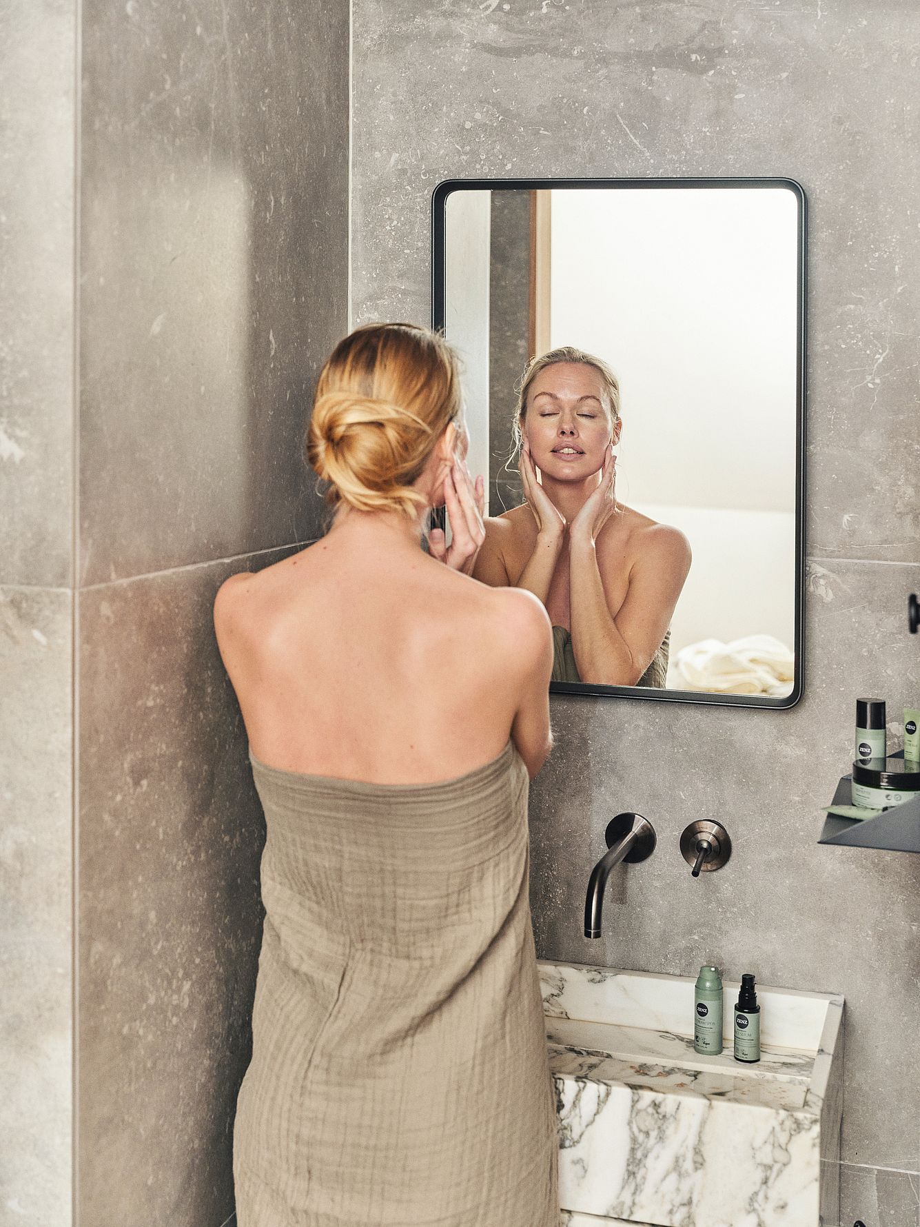 Inneholder blant annet økologisk aloe vera, økologisk havreekstrakt, multebærekstrakt og trehalose, som pleier og fukter huden.
